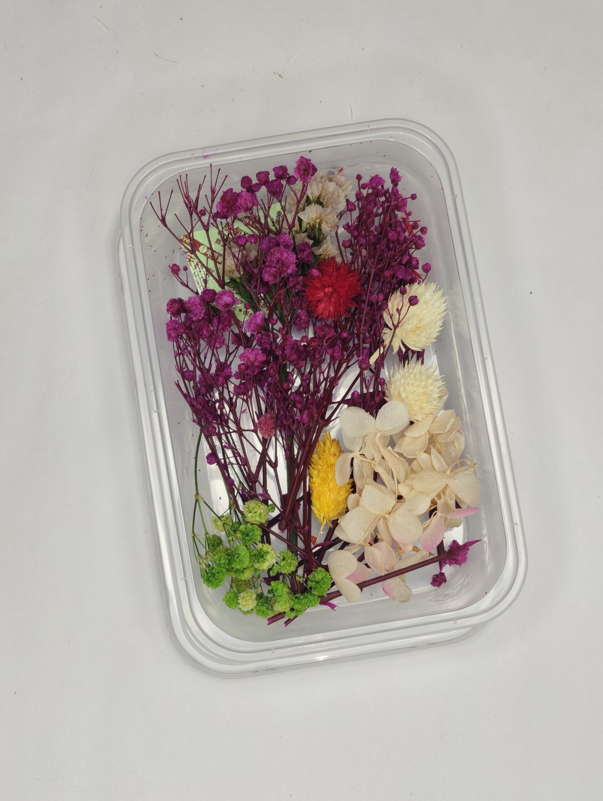 A charming collection of delicate dried flowers featuring vibrant pink baby blooms, soft cream petals, bright yellow accents, and fresh green highlights. This colorful mix brings together natural textures and gentle tones, perfect for resin art, handmade jewelry, scrapbooking, candle decoration, and other creative crafts. Carefully preserved to maintain their beauty, these flowers add a romantic and elegant touch to any DIY project. β¨