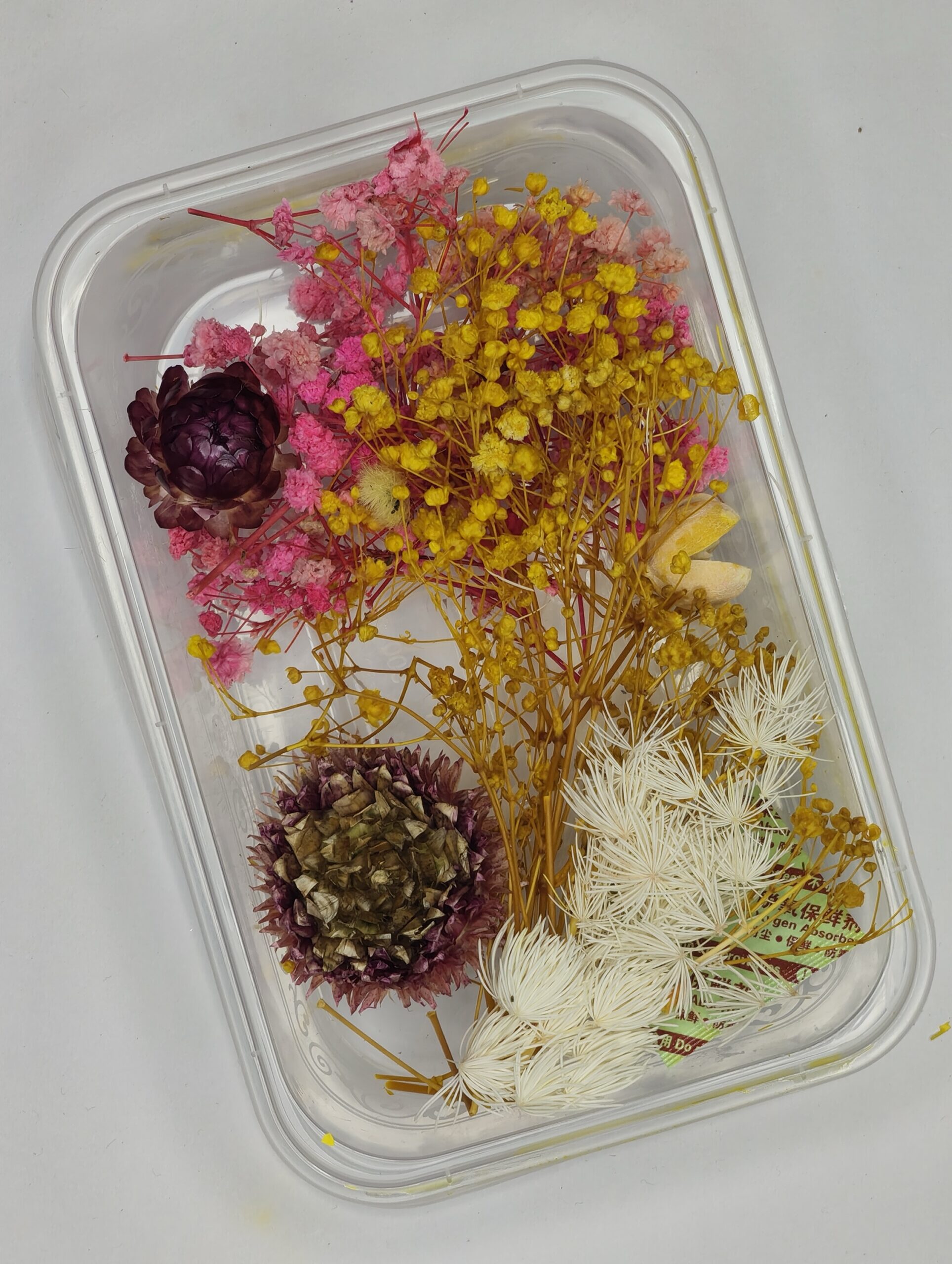 Bring vibrant colors and natural beauty to your creative projects with the Sunset Bloom Dried Flower Mix. This stunning assortment features bright yellow baby flowers, soft pink blossoms, elegant white floral accents, and unique preserved blooms that create a warm sunset-inspired palette. Carefully dried to maintain their natural texture and color, this mix is perfect for resin art, candle decoration, soap making, jewelry crafting, scrapbooking, and other DIY projects. The combination of bright and soft tones adds a charming, artistic touch to handmade creations and decorative pieces.